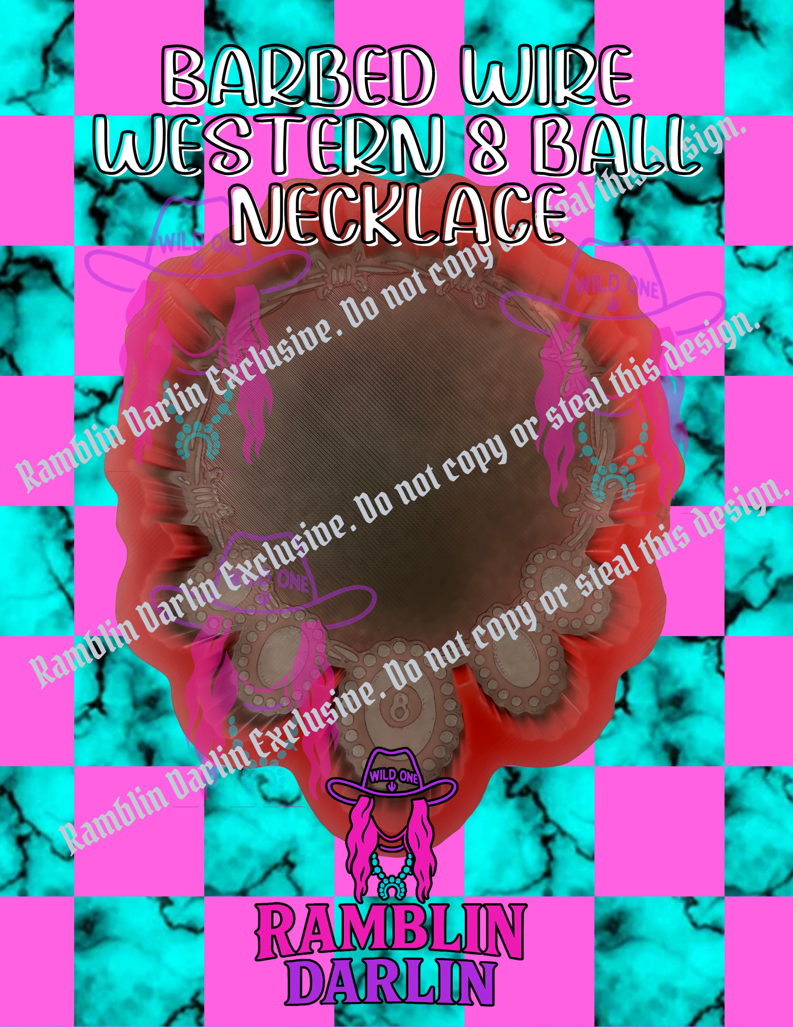 Barbed Wire Western 8 Ball Necklace Mold