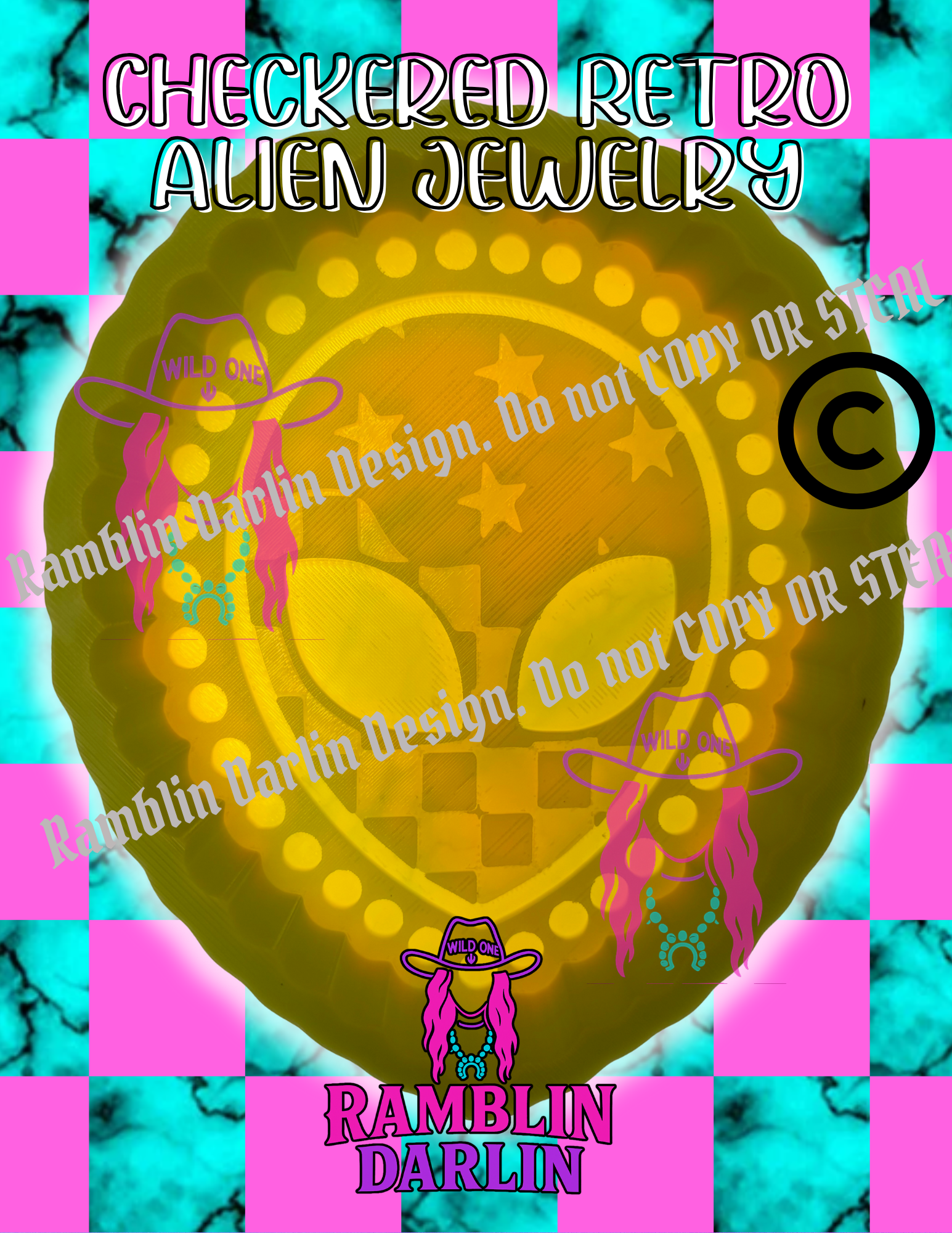 Checkered Retro Alien Jewelry Mold ©️